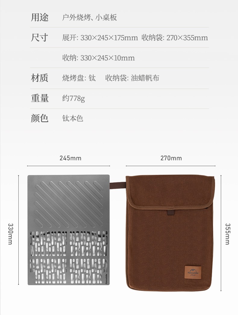 Naturehike-NH 蒙德里安純鈦摺疊兩用燒烤盤