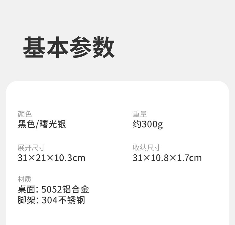 材質:桌面-5052鋁合金|腳架-304不鏽鋼