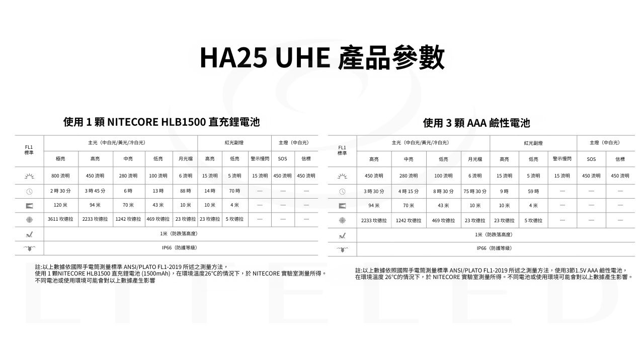 Nitecore HA25 UHE 多色溫雙電源戶外頭燈 首款 12 核 MCT UHE 矩陣光學系統 | 800 流明 | 雙電源兼容 產品核心亮點 MCT 多色溫技術: 首款搭載 12 核 MCT UHE LED,提供更廣泛的戶外適應性。 強勁亮度: 最高 800 流明輸出,射程可達 120 米,穿透力強。 雙電源設計: 兼容專用鋰電池與通用 AAA 電池,補給無憂。 超高光效 UHE: 極致光學透鏡系統,光斑均勻柔和,視野清晰。