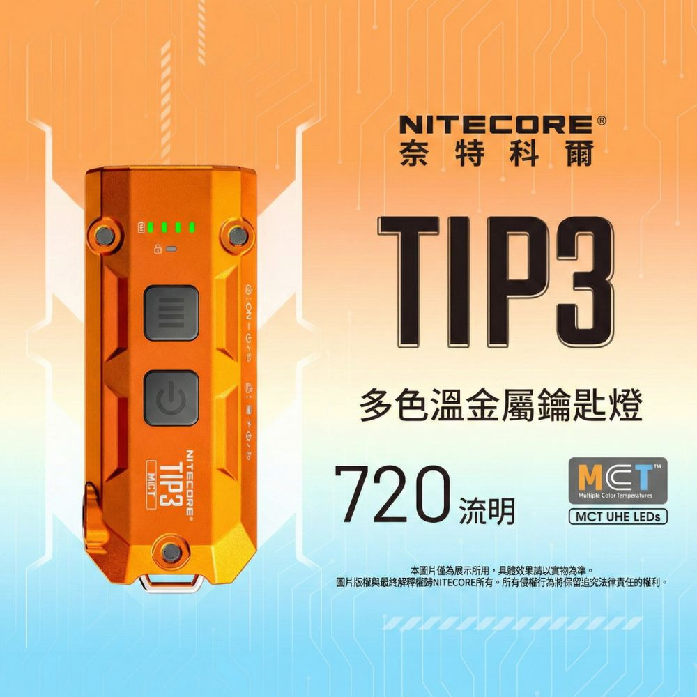 NITECORE TIP3 MCT 720流明 全金屬鑰匙燈|迷你手電 92米遠射 雙按鍵 極輕巧30g