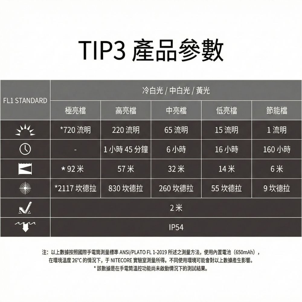 ●最大光強 2117 坎德拉,最遠射程 92 米