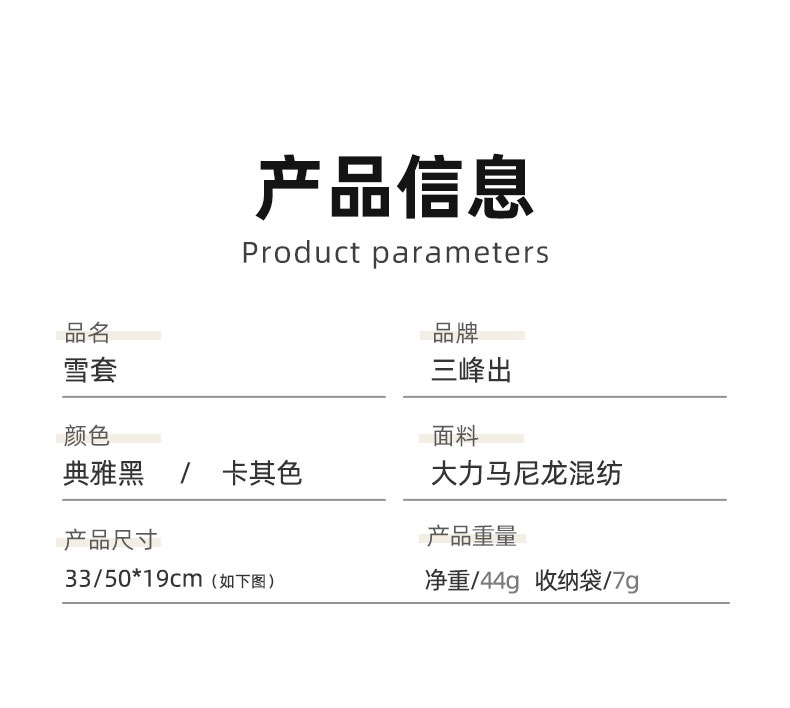 專為越野跑、健行與登山設計的超輕量防護綁腿,採用 20D大力馬抗撕裂防水布料,有效阻擋沙塵、雨水、雪泥侵入,讓雙腳保持乾爽舒適。